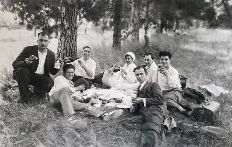 A group of Greek migrants at a picnic in the outskirts of Melbourne in 1936. La Trobe Greek Archives , CC BY-SA