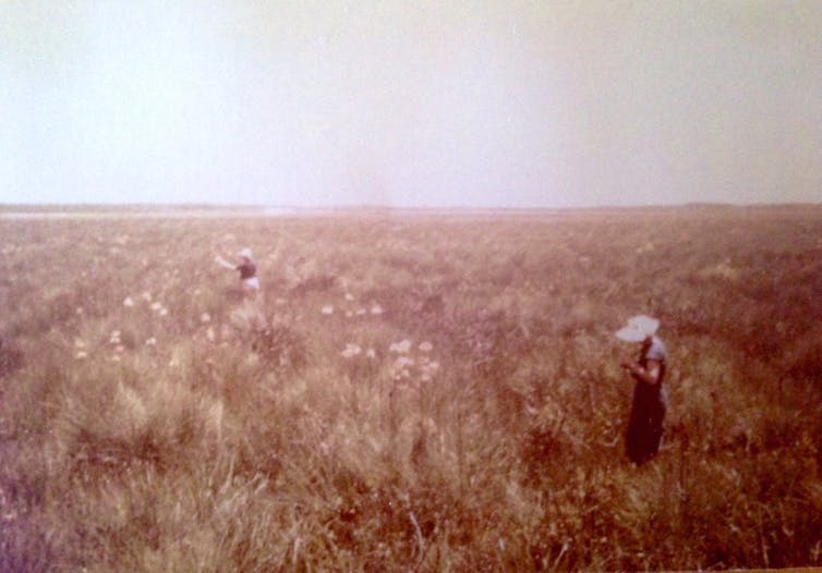 Kathleen McArthur (left) and Judith Wright (right) wildflowering at Currimundi in 1961. Photo by Alex Jelinek. Courtesy Alexandra Moreno
